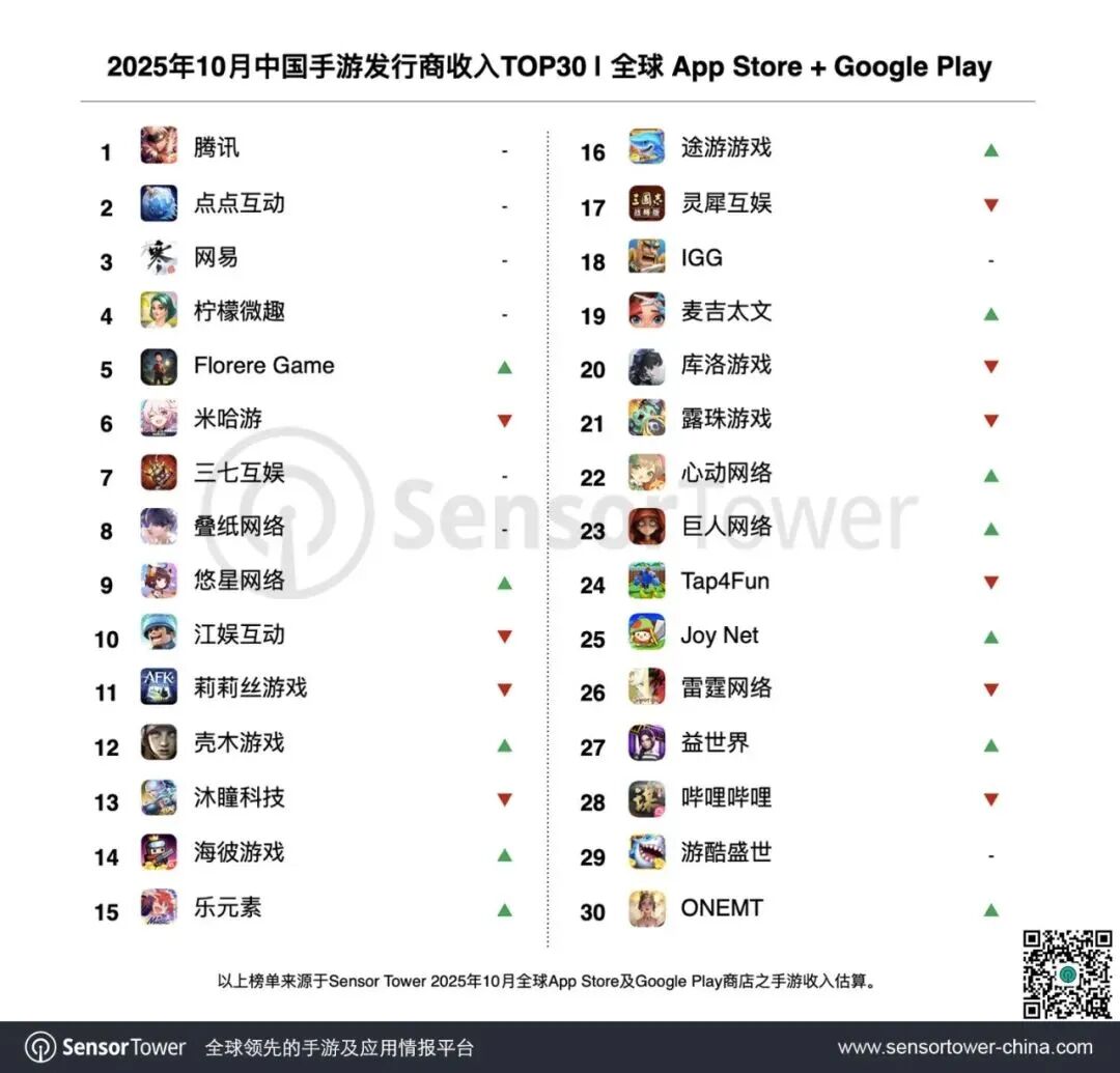 (9)2025年10月中国手游发行商全球收入排行榜