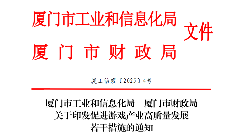 11月19日,厦门市工业和信息化局 厦门市财政局关于印发促进游戏产业高质量发展若干措施的通知。