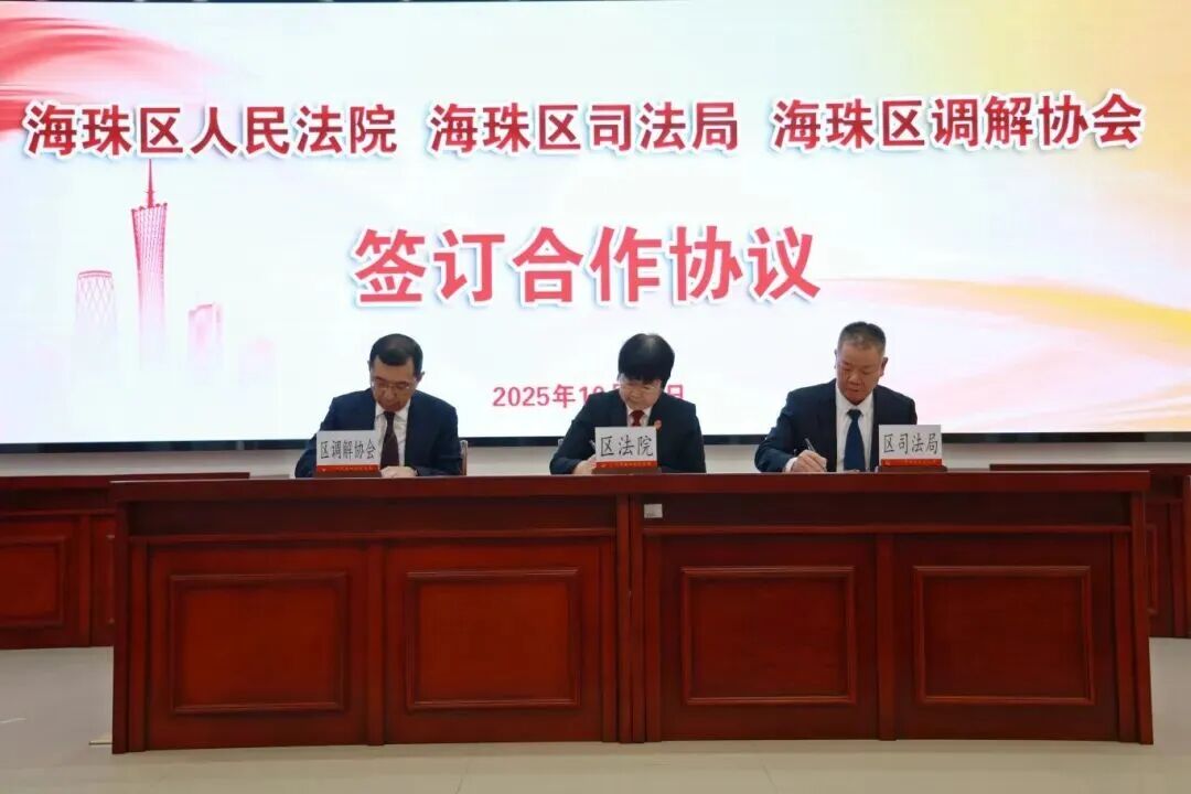 为了促进诉讼解决与商事调解的有机结合,海珠区人民法院、海珠区司法局和海珠区调解协会深度合作,制定商事纠纷诉调对接工作制度,畅通诉讼与调解转换渠道,推动案件科学分流与精准引导,实现刚性权威与柔性化解优势互补,为当事人提供分层递进、多元可选的解纷路径。